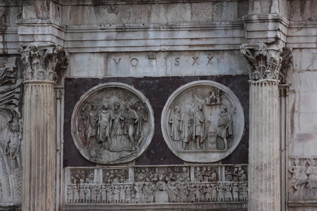 The ARC DE CONSTANTIN is the largest surviving example of the classic Roman triumphal arch. Triumphal arches were monuments to military triumphs and significant events; they were often constructed over roads and preferably on the route used by Triumphal processions. Although they served no practical purpose, they were intricately detailed and decorated with sculptures, reliefs, columns and bronze lettering (used for inscriptions).